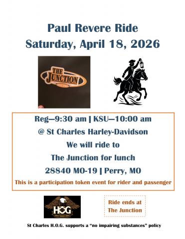 Closed Event: Chapter activities are conducted primarily for the benefit of H.O.G. Chapter members. Closed Events are those events open to Chapter members and one guest per member.  All guests must sign an event release. Be aware, all rides and events are subject to change or cancellation due to weather or other circumstances beyond our control.